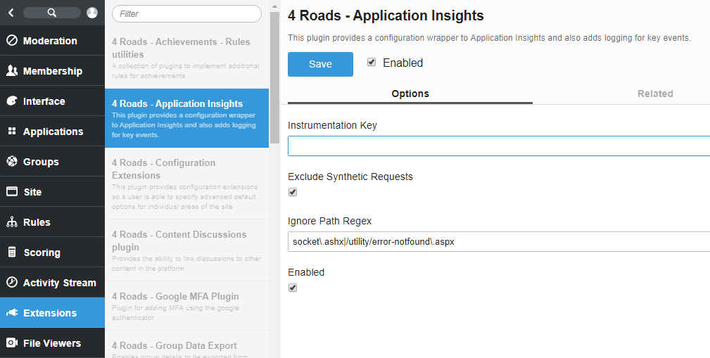 2. Once created take the “Instrumentation Key” and place it into the Application Insights Telligent plugin: