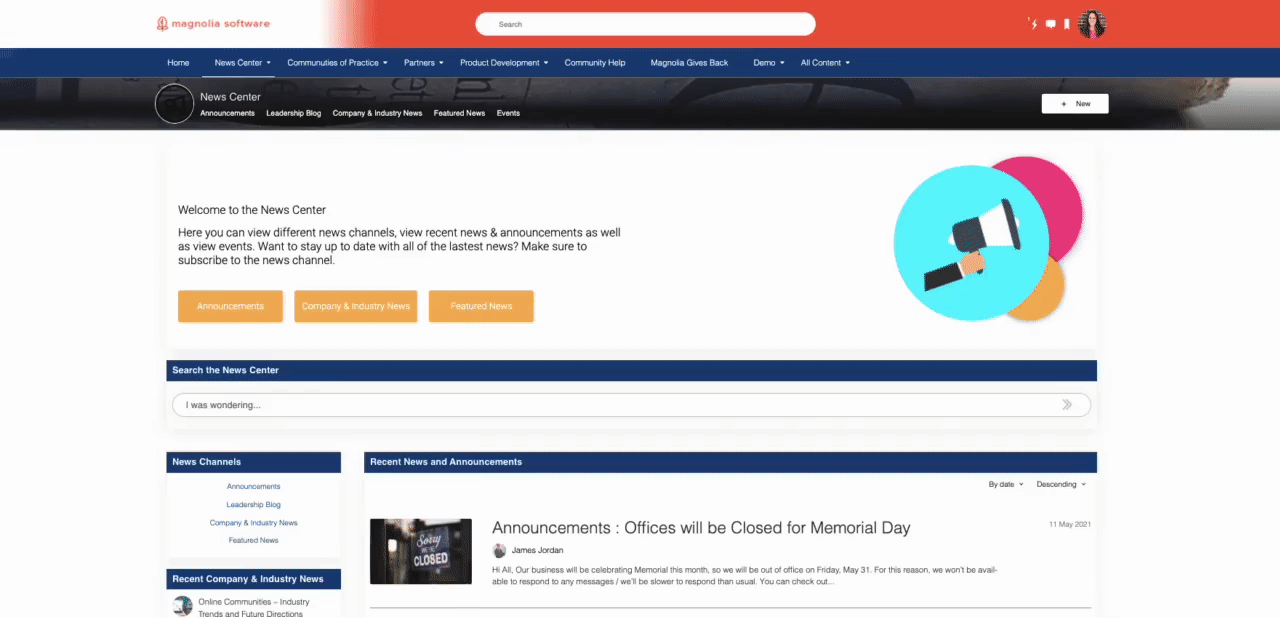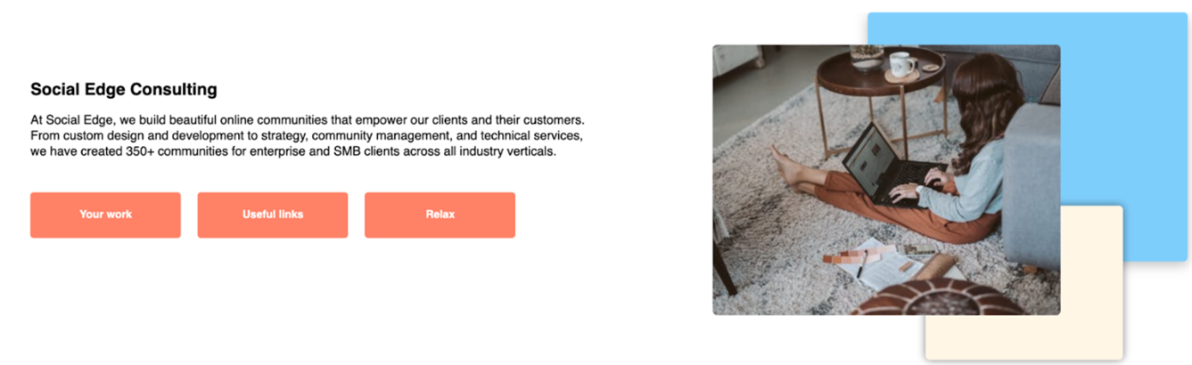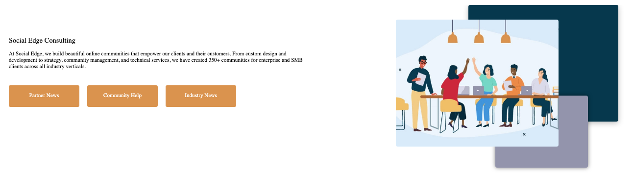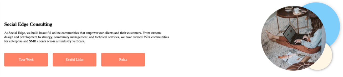 With Hero, you can configure a larger-sized banner to display an image (with shapes behind it if wanted), general text, a title, and three call-to-actions. This is a great way to inform users why they may be on a certain page and provide them with important links within a space. This is helpful if you have a landing page and need to provide users with a blurb on why they are in a certain space as well as the quick links they would most likely need in that space.